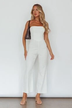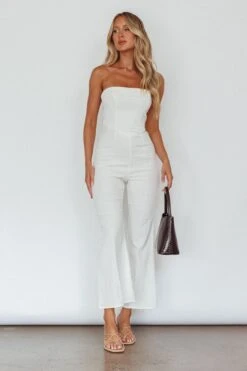 Make a statement in our chic What’s The Catch jumpsuit. Featuring a strapless style and small flare in the pants. Perfect for your 9-5 or lunch dates with your girls. Team it with mules and a tote for a look that will turn heads.