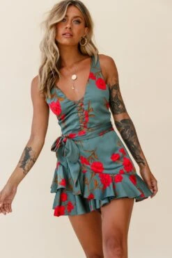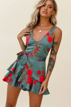 - Sage floral print romper